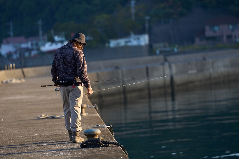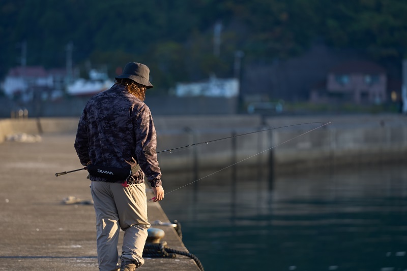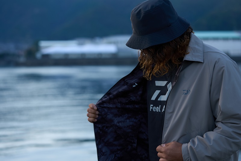 表と裏で異なるデザインを配し、表情を変えて着用できるリバーシブルジャケット。ややゆったりなシルエットながら、エギング特有のしゃくりの動作を妨げない独自パターンを採用。