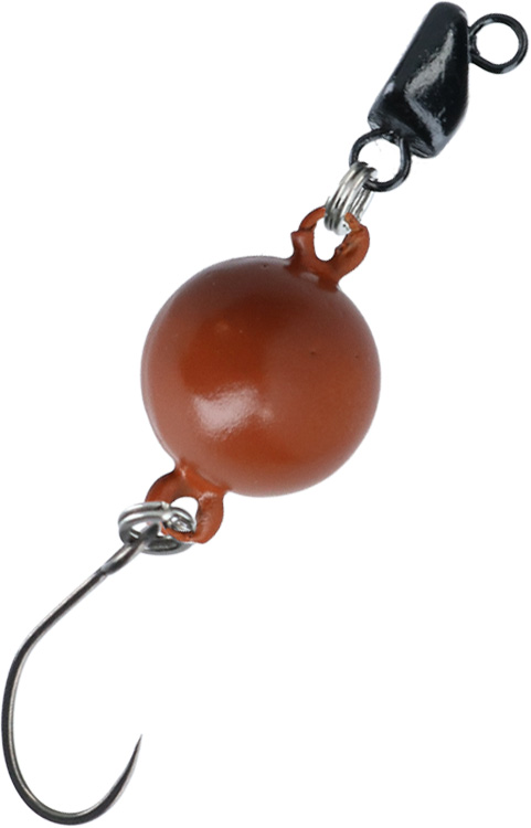 ボトムで浮く種。底のちょっとした泥やゴミがあるところでは沈むルアーは潜ってしまい見えなくなる。鱒ノ種は浮力があるので浮いてアピール可能。水の動きにあわせてユラユラと誘う。