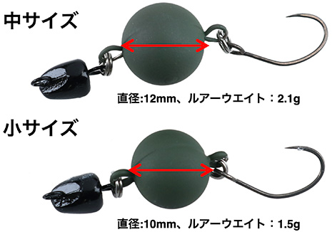サイズは小の直径10mm/1.5gと中の12mm/2.1g。