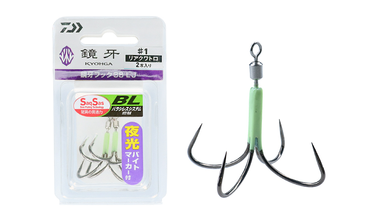 夜光バイトマーカー付のフックは、深場・濁り潮・夜釣り等でアドバンテージあり。
