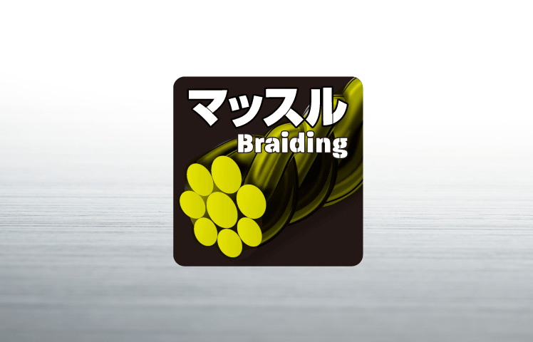 原糸1本1本が従来原糸よりも太く真円になった新原糸を使用し、強力・耐摩耗性・耐久性の向上を実現しました。この原糸をより合わせた1本をさらに4本・8本・12本のブレイド化しました。