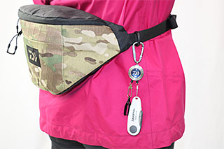 ゲームベスト/バッグのDカンに取付可能、今までの安全ピンタイプより取付やすい