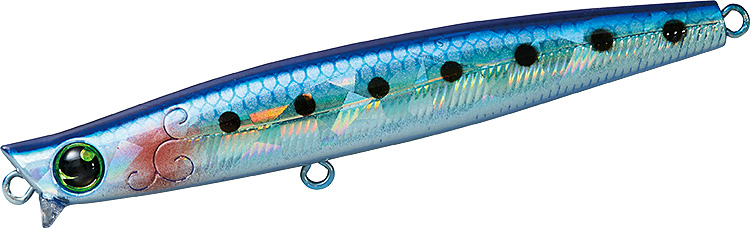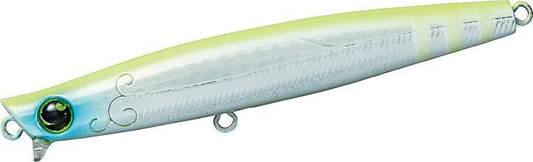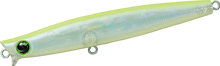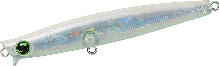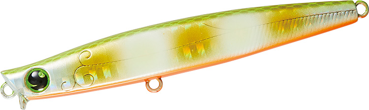 リップ付きなので、簡単に表層をレンジキープでき、巻き出しのレスポンスが極めて早いので、80Sと同様に、シャローエリアでの扱いやすさは健在のシンキングペンシルです。スリムなシルエットに、速めのタイトウォブンロールの泳ぎの組み合わせは小型ベイトにマッチしやすく、あらゆるシチュエーションで活躍してくれます。特に、河川の明暗部やシャローエリア付近に10cm前後のイナッコやアユなどのベイトが出入りしている時に、明暗部を表層ドリフトでアプローチするにはもってこいです。