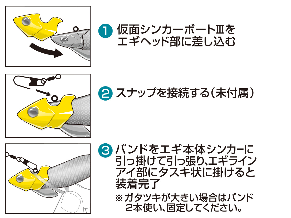 エギにシンカーを装着し、スナップとバンドで固定するだけ。