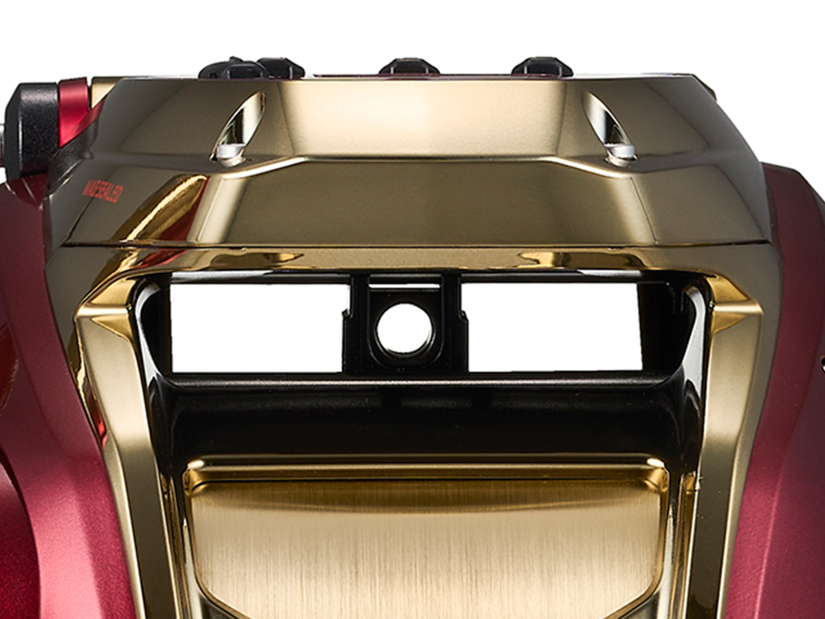 パワーレバーの位置をボディの中央に移動し、形状もレバーからジョグダイヤルスタイルに変更することにより、竿を握った手の親指一本で巻き上げやクラッチのオンオフを行えることで、空き手をレバー操作から完全に解放しロッド操作に専念できます。親指一本での自由自在な操作はレバーの微妙な操作を可能にし、巻上げスピードを意のままに操ることが可能になります。