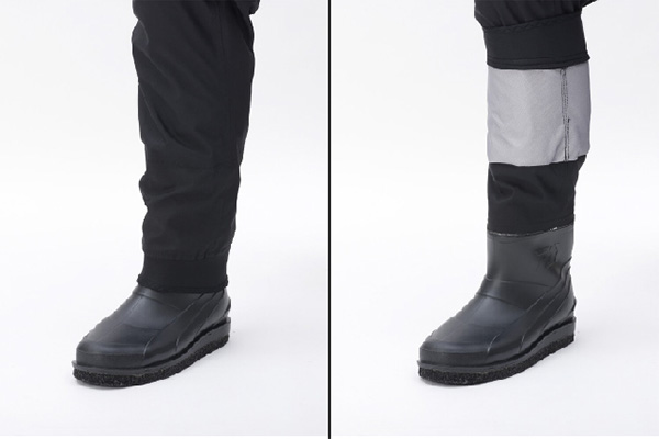フルオープンになるので、着脱が楽で、小用事に便利。ウェーダー内のムレも一気に放出