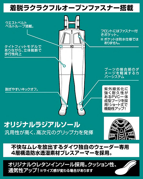 フロントファスナーを採用!上位モデルのラジアルウェーダー新登場!