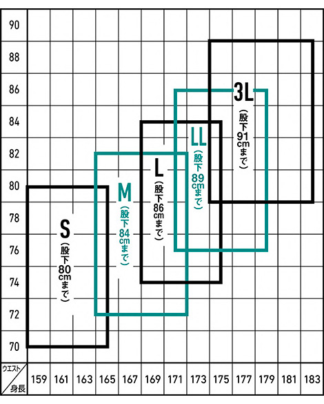 ※股下とは股間から土踏まずまでの長さを基準としています。