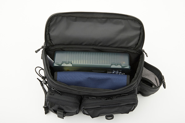 ルアーチェンジをスピーディーに行えるルアーマット付きポケット。