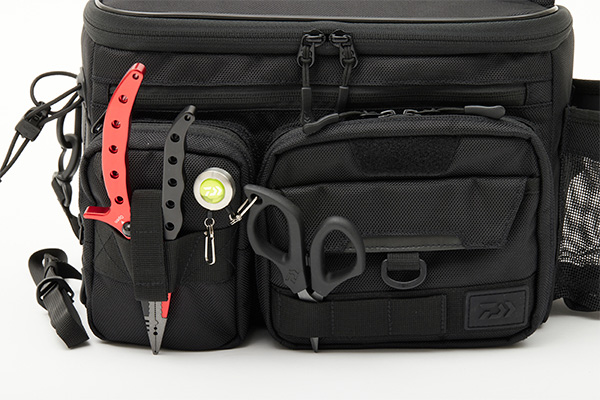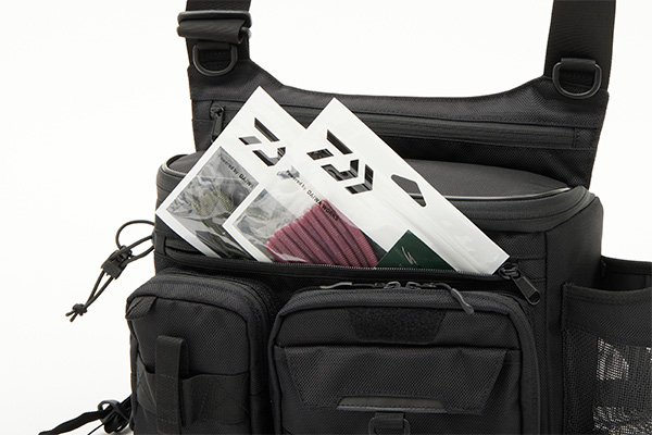 ひんぱんに使用するルアーを収納し取り出しラクラク、「ルアーマット」付きフロントポケット。