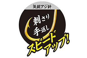 半ネムリ針先だからエサ付け楽々!固い赤タンも刺しやすい。針全体にもヒネリが無い為、アジの上顎に掛かりやすく、バラシ大幅減少!