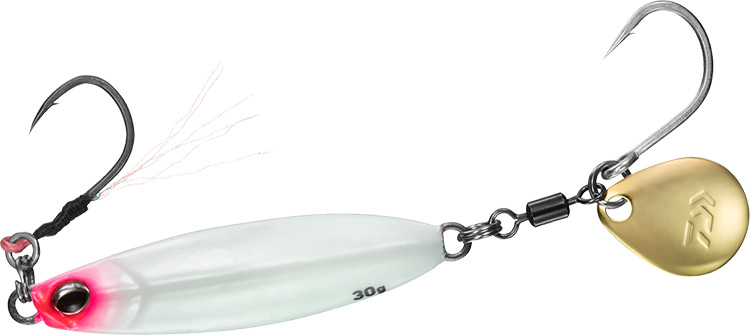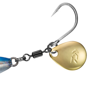 超早巻きでもアングラーに負担の少ない小型ブレードを搭載。また、小型の為、飛行姿勢にも影響が小さく安定した飛距離を約束する。フックは太軸シングルフックを搭載。強度はもちろんのこと、しっかりと深く刺さりバレを軽減する。