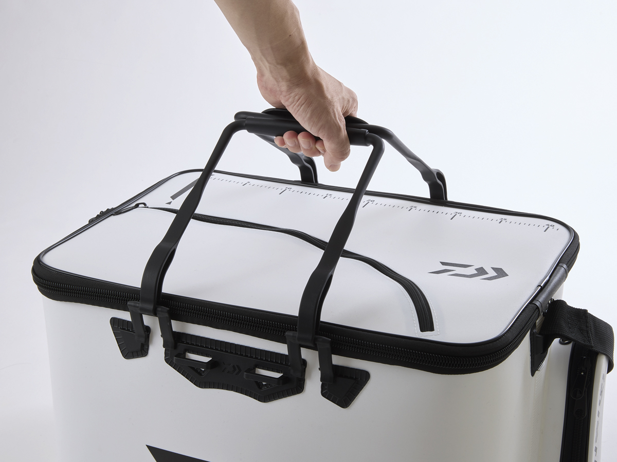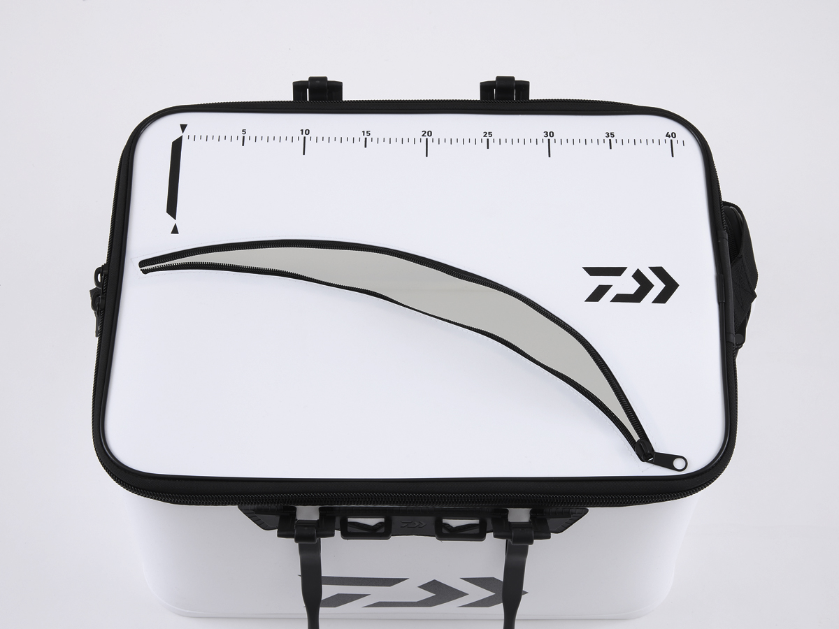 ファスナーをラウンドにすることで開口幅ができ、片手でスムーズに魚の投入が可能。