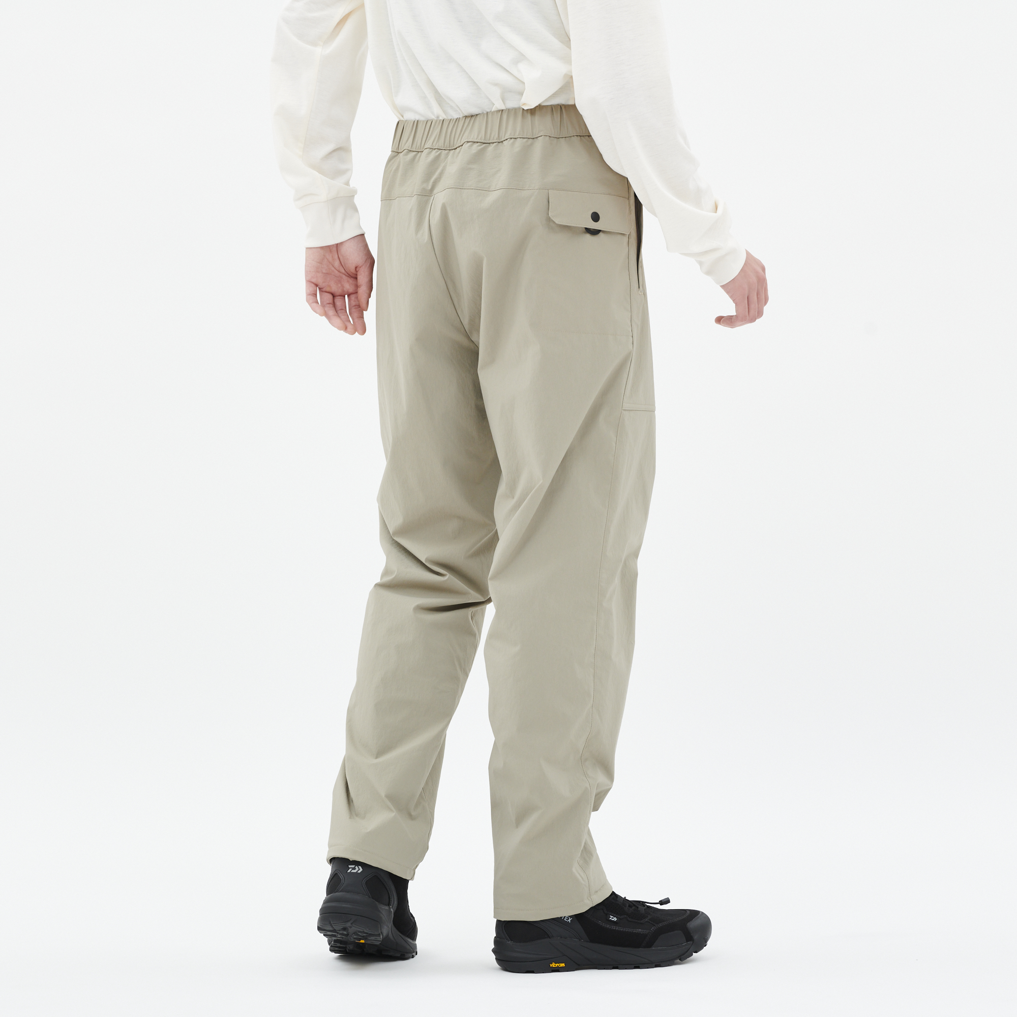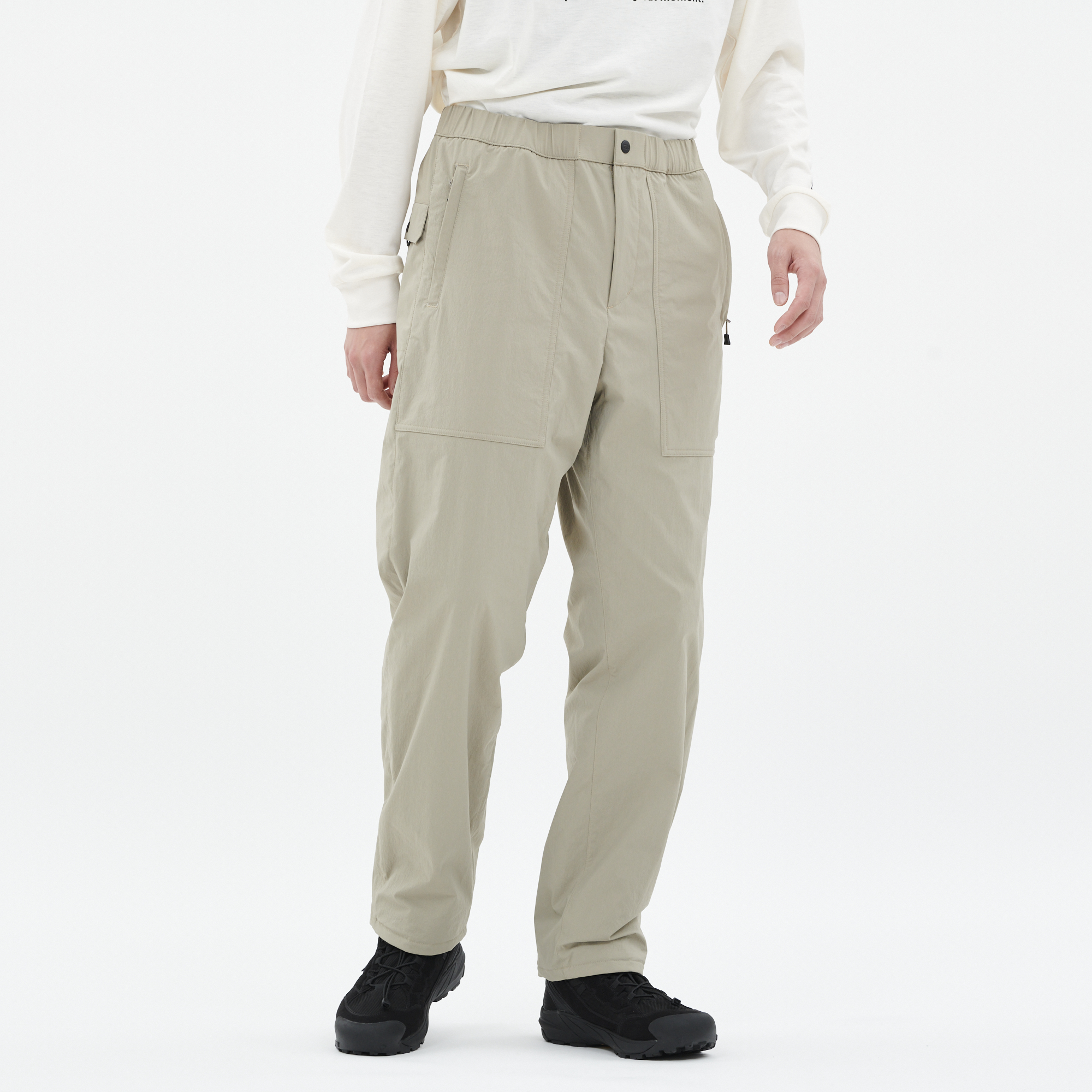 中綿と裏地を一体化した、嵩高で軽量な素材を裏に使用することで保温性を確保したパンツ。