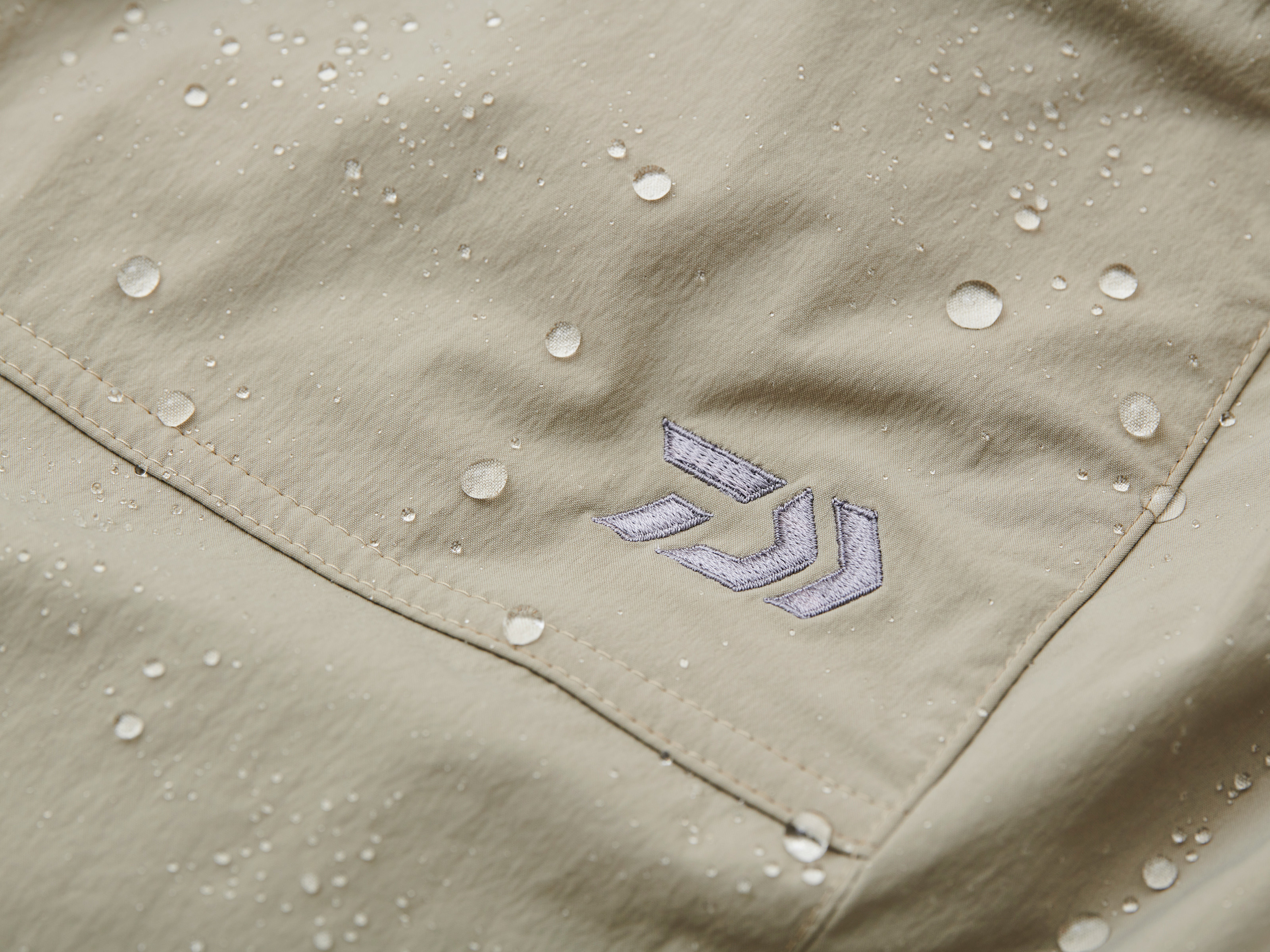 表地は撥水加工を付与し、釣行時にも便利。後ろポケット部はグローブをしたままでもかじかんだ手でも操作しやすいループ付きタブを使用。