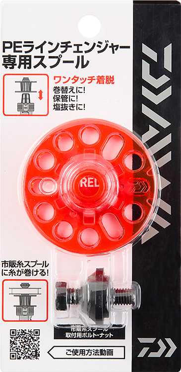 PEラインチェンジャー専用スプール(RED) | 約19 | 約Φ6.0×4.1 | レッド | 参考巻糸量:PE4号約300m/付属ボルト、ナット:M8 | 1,250 | 4550133229770 |