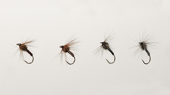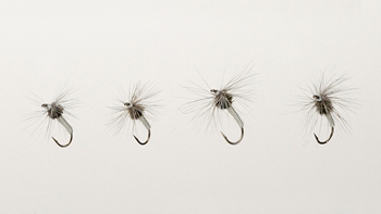 ファジー毛バリをベースに夏以降渓流魚の主食となる陸生昆虫を模した暗めのブラウンボディ(ブラウンハックル)とブラックボディ(グリズリーハックル)の2カラーをセット。高活性期中心の使用となるためサイズは#12の1サイズ。深く沈めるとカゲロウの幼虫のイミテーションとしても活躍する。