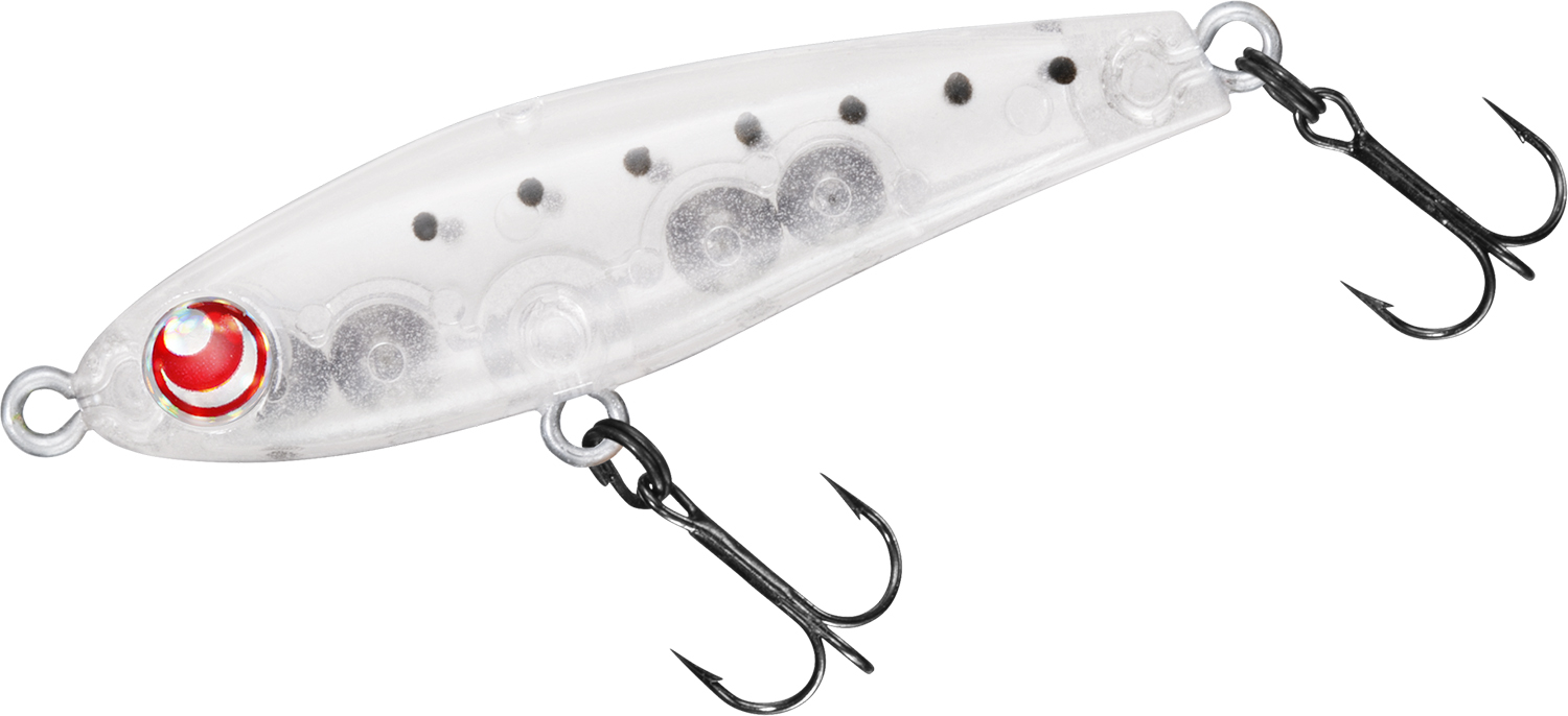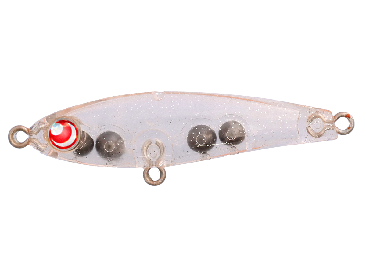 岩崎林太郎監修。沖のデカメバルを攻略するぶっ飛びシンキングペンシル。50mmのボディには、アクションが破綻しないギリギリまでウエイトを詰め込んだ。また、空気抵抗となるボディの凹凸を無くし、テールを細く絞ることで遠投性能を最大限に高め今までの同サイズでは投げ切れなかった場所への攻略を可能にした。アクションはリトリーブの速さで変化する2WAYアクション。スローリトリーブでは、ハイピッチロールとボディのフラッシングでアピールし、リトリーブスピードを上げればウォブルを伴ったロールアクションで広範囲にアプローチできる。フォール中はボディが揺れながら落ちるシミ―フォールでバイトチャンスを逃さない。体高のあるフラットサイドボディは弱いアクションでもしっかり水を押し、ロールアクションによるフラッシングがメバルへ強烈にアピールする。