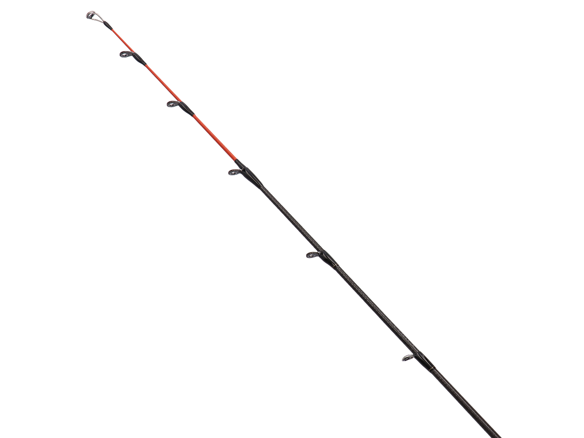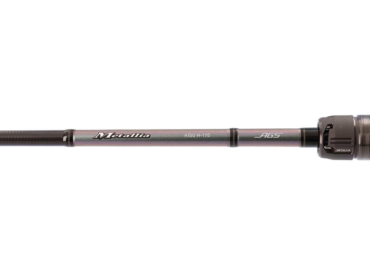軽量・高感度を実現するAGS(エアガイドシステム)はカーボンフレームを採用しており、チタンと比較して約3倍の剛性をもつカーボンの特性から、ラインを通して伝わるわずかな信号を吸収することなくダイレクトにブランクに伝える高感度を有します。また、カーボンの軽量性によりロッド全体の軽量化にも貢献し、特に穂先部の軽量化につながることで感度の向上にも追加の効果が見込めます。
