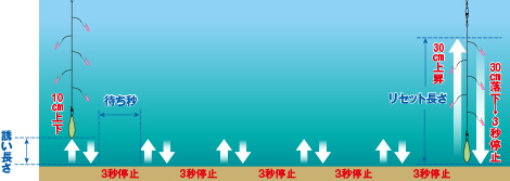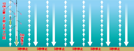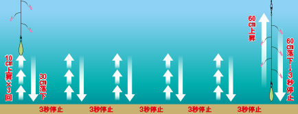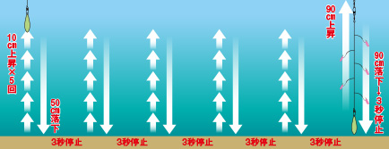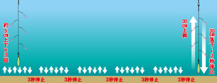約5㎝上下3回→3秒停止×5回繰り返し→30㎝上昇、