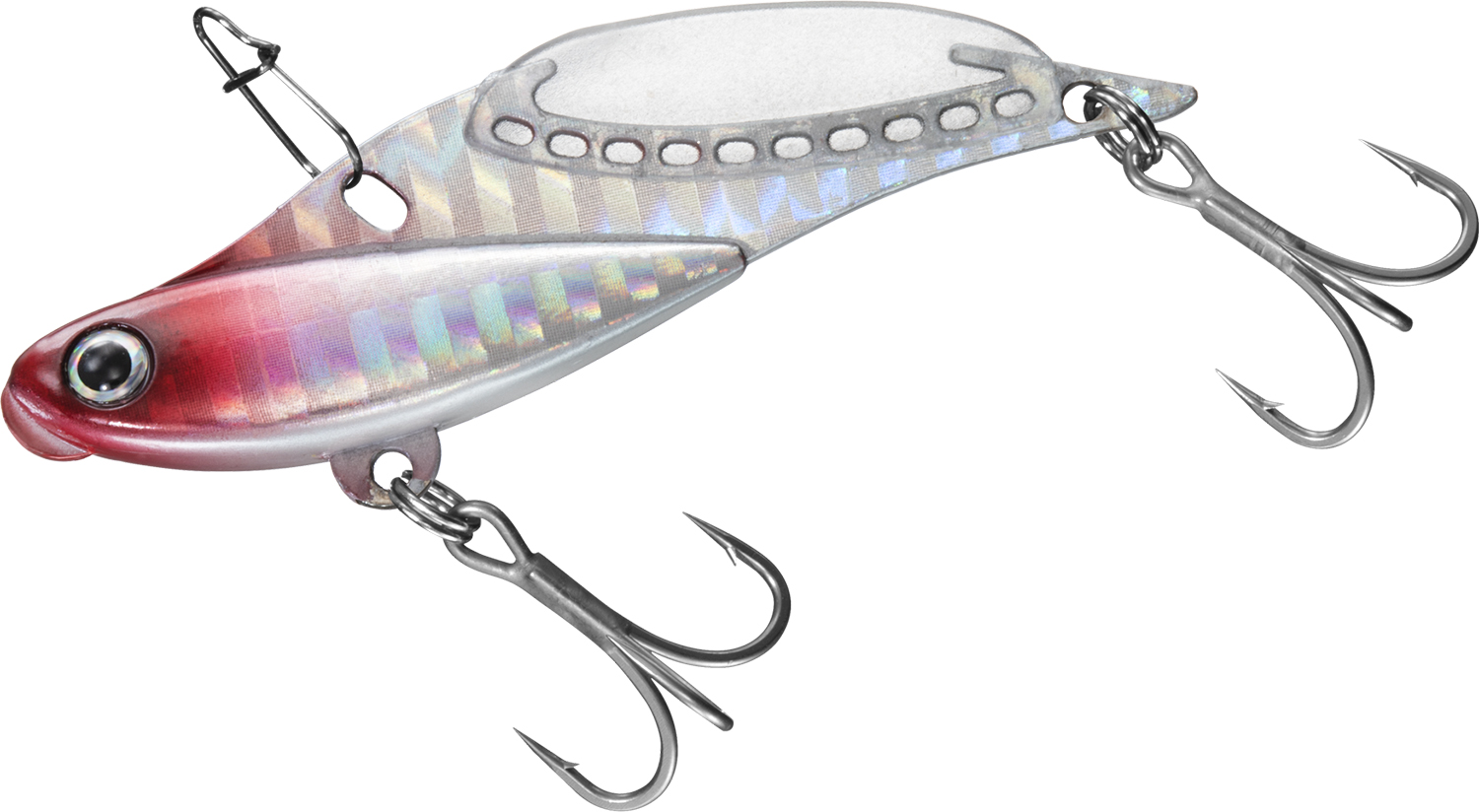 エラストマーフィン(背びれ)搭載のメタルバイブ(PAT.P)。メタルバイブの飛距離、沈み、感度とソフトベイトのナチュラルな波動を兼ね備えた新コンセプト。ナチュラルな水切り波動で「見切られ易さ」を軽減。