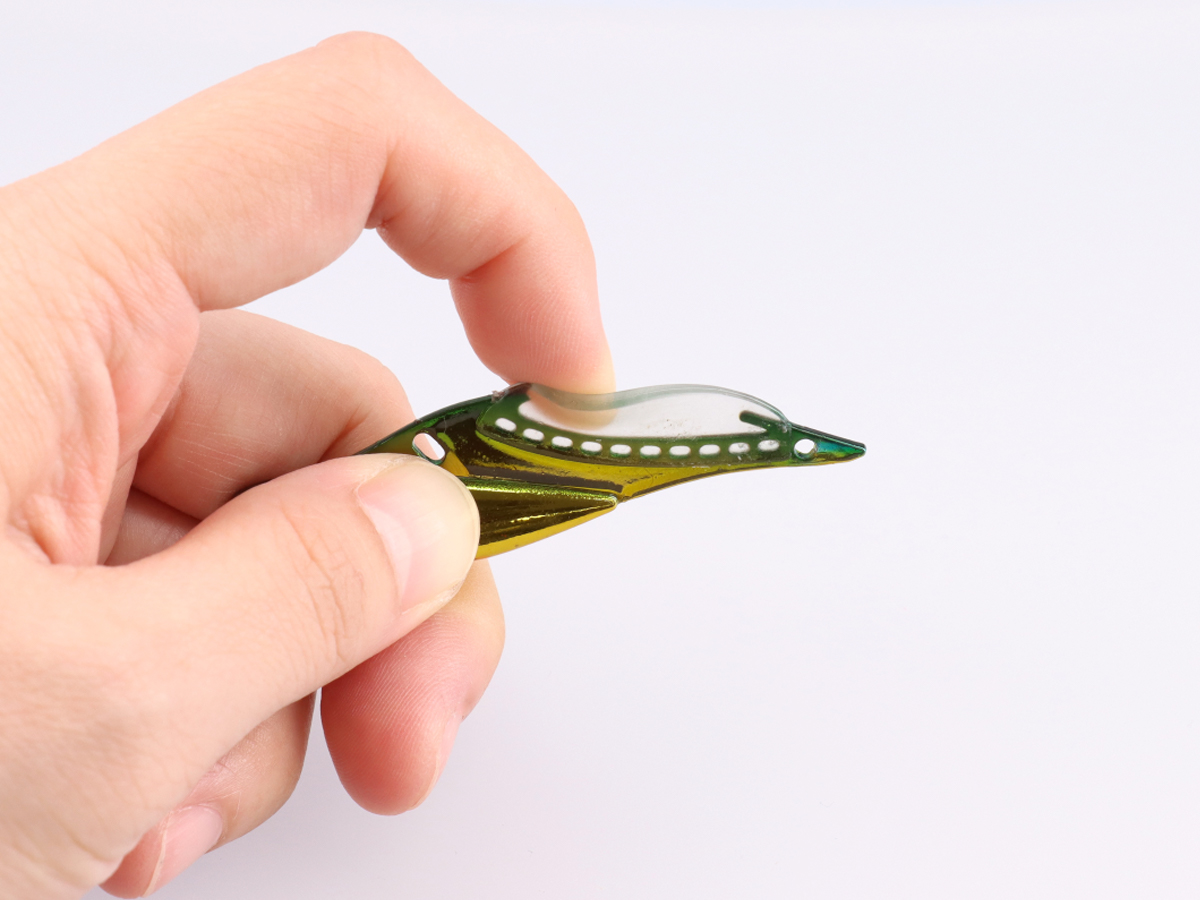 魚の体表をとことん科学するために魚の魚皮を3D解析し、ホログラムで実現しました。魚の体表はウロコで覆われていることから、これを簡略化したストライプパターンをレイヤードさせることで生きている魚に近づく輝きを与えています。