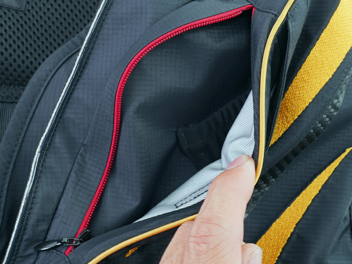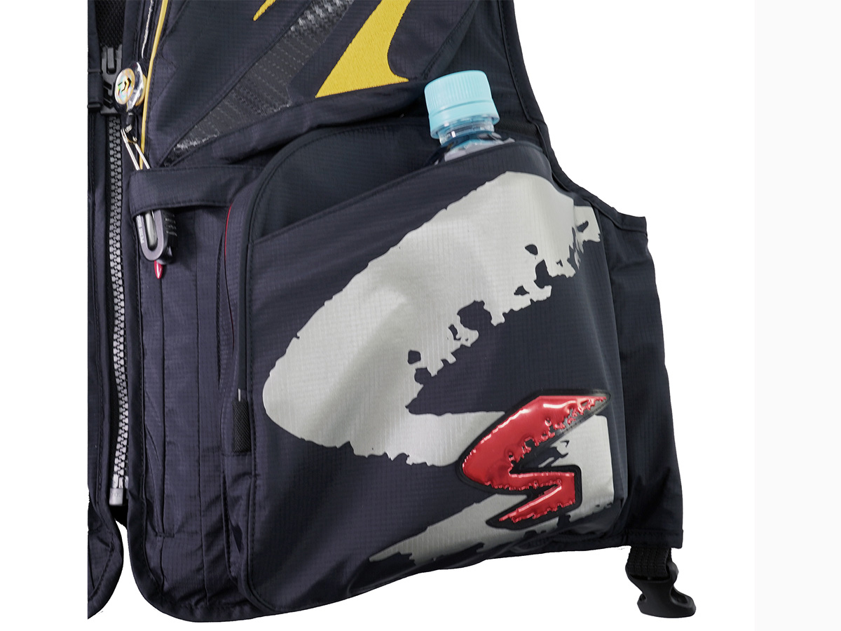 取り外し可能な間仕切り付きポケット。熱中症対策に予備の500mlのペットボトルの収納可能。
