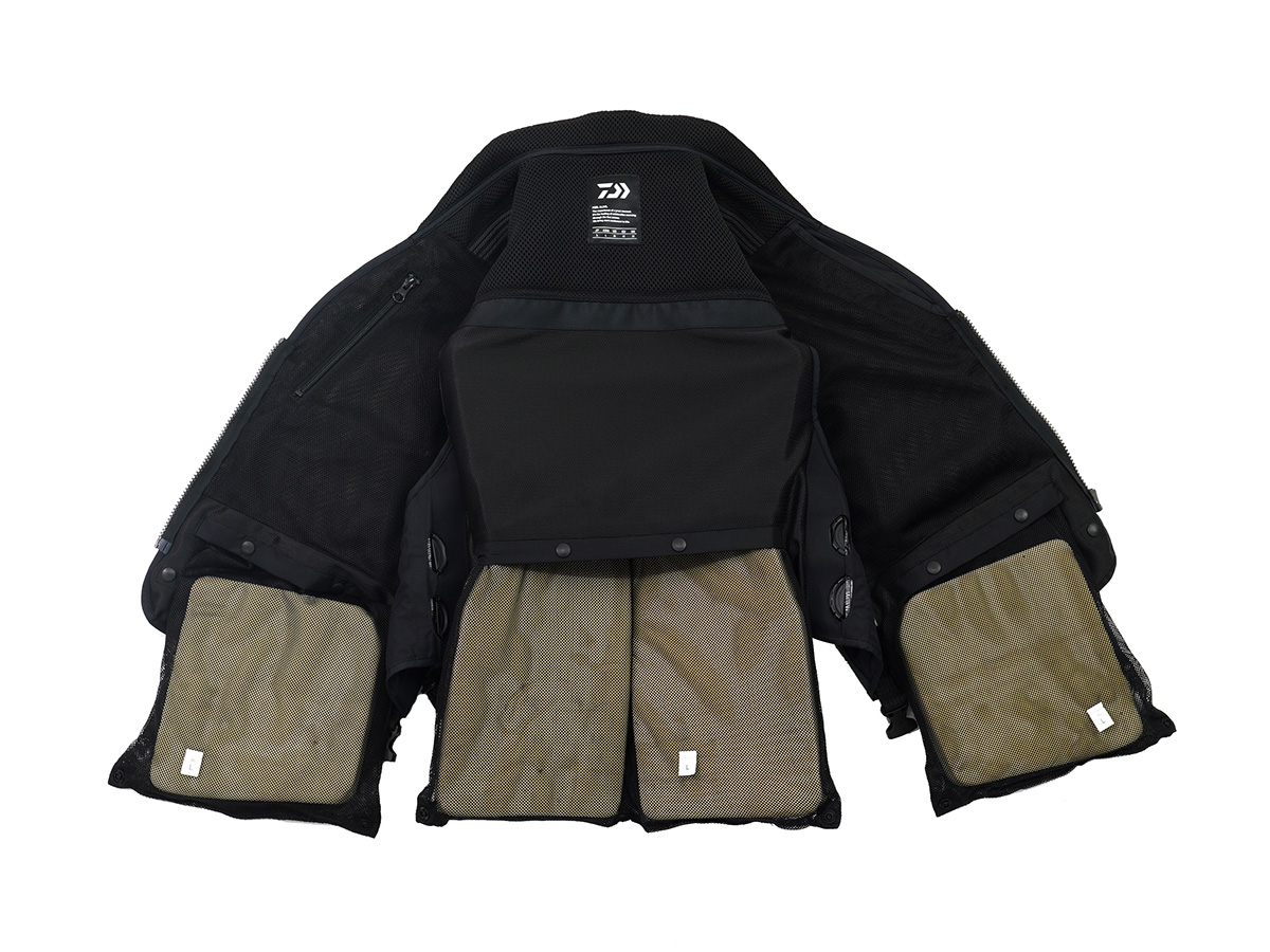 岸から釣るスタイルや、流れの緩やかな浅い河川などは浮力材を取り外し、DDSを締めあげることで通常のベストスタイル。