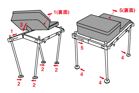 2.釣り台の足を矢印の方向(内側)へ移動。