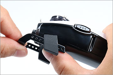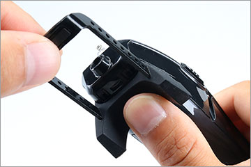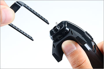 指でゴム足を押えながらふんばるレッグプレートをゴム足左右のプレート挿入穴に差し込んでご使用ください。