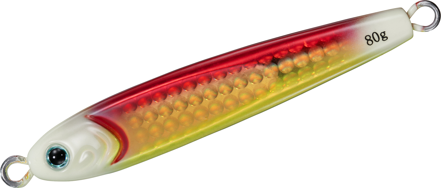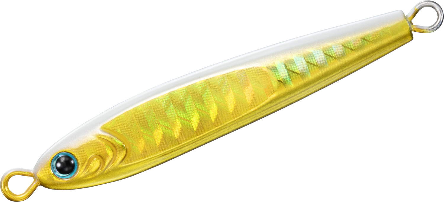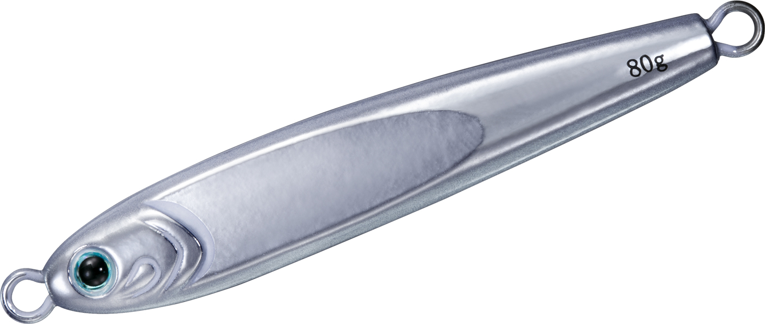 鉛の約1.7倍の比重があるタングステン製だから小さくてもウエイトがあり、ストレスのないロングキャストが可能。イワシを模したリアルシェイプを維持しつつも、高比重ボディをアクションさせるための左右非対称デザイン。リトリーブでは確実なスイミングアクション、フォールでは水平に近い姿勢でスライドし、弱ったベイトを演出する。