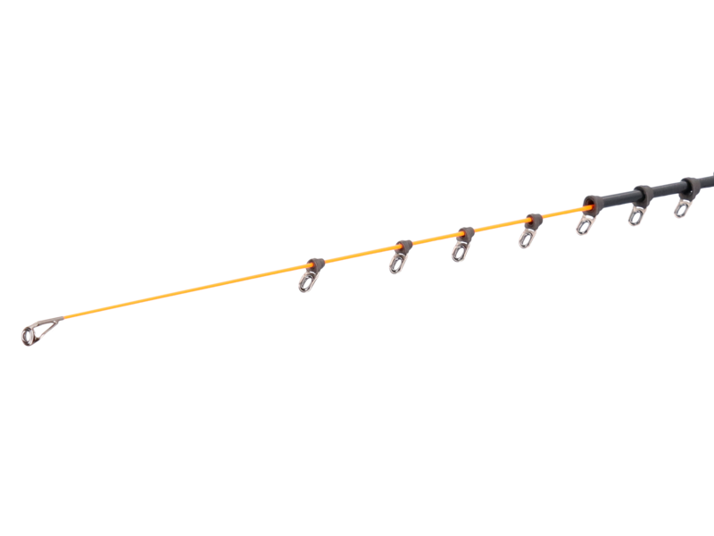 これにより、魚の引きには柔軟に追従し、曲がり込んでからはリフト力を発揮するバランスを実現。2番の上部は銀狼唯牙よりも絶妙に張りを持たせており、重いウキでも穂先部がブレにくく、仕掛けの投入精度が向上。