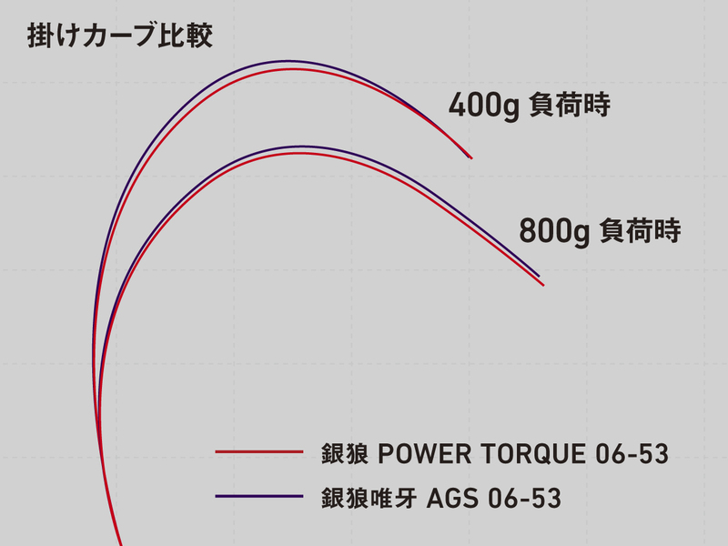 銀狼唯牙に対し、高弾性素材を使用しており、特有の張り感を解消する為に胴部がスムーズに曲がり込むようチューニング。