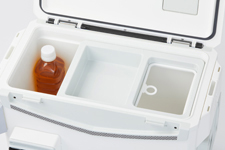 エサパックや小物の収納に便利なトレー付き(クリーンパック枠とお手持ちのビニール袋を使えばシロギスをクーラー内で仕分け出来る)。500mlペットボトル縦置き可能。