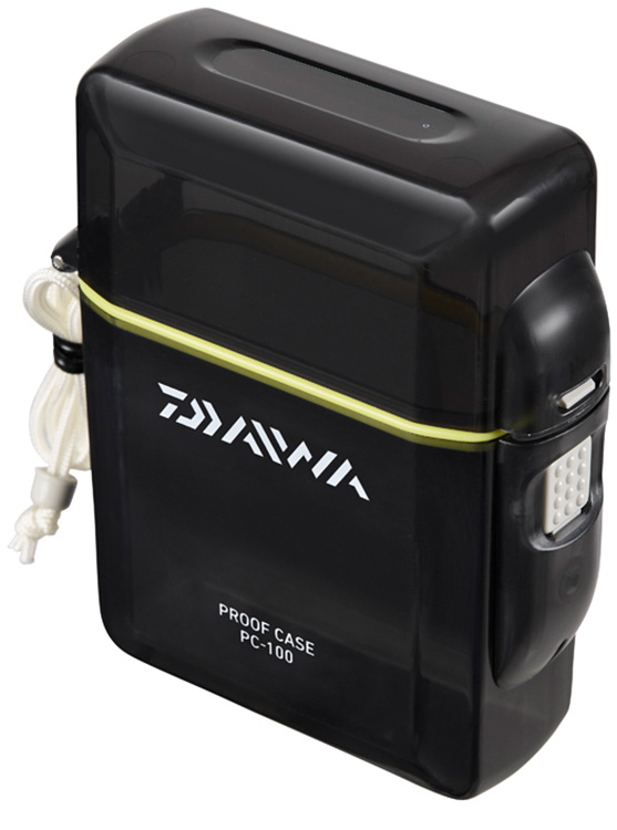 高さ100mmのものまで収納可能、片手で開けるワンプッシュ式ロック。簡易防水仕様で首掛けロープ付き。出し入れに便利なラウンド形状。