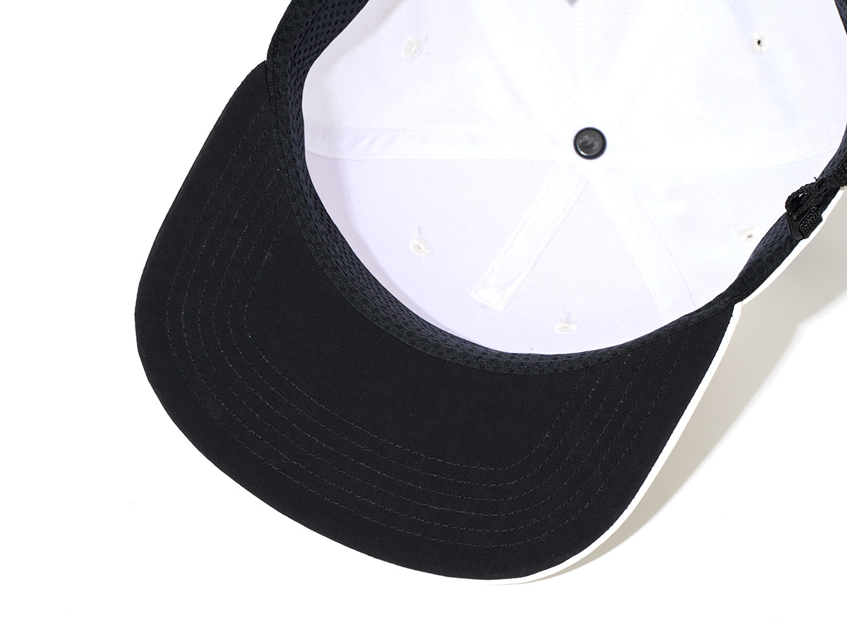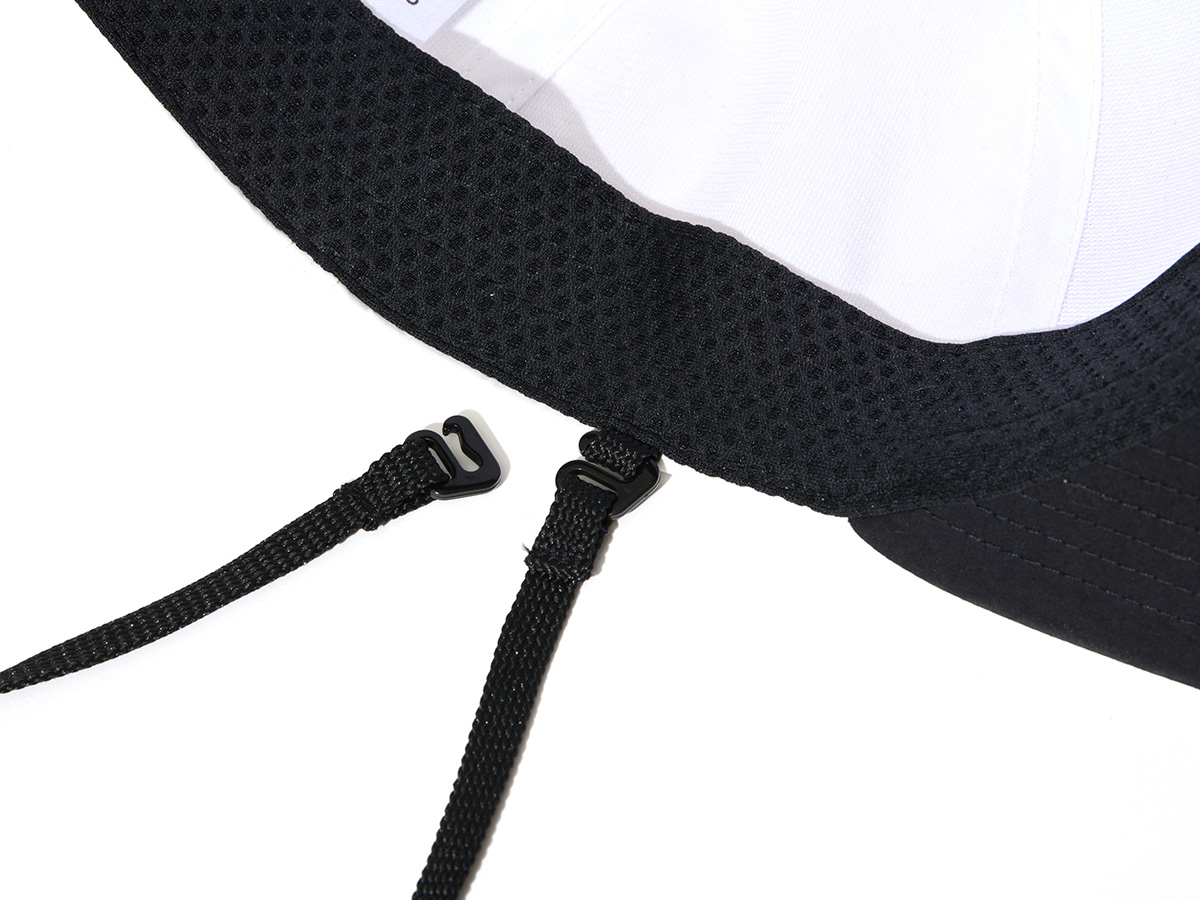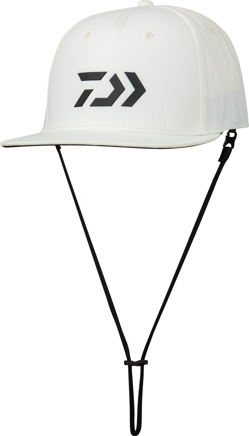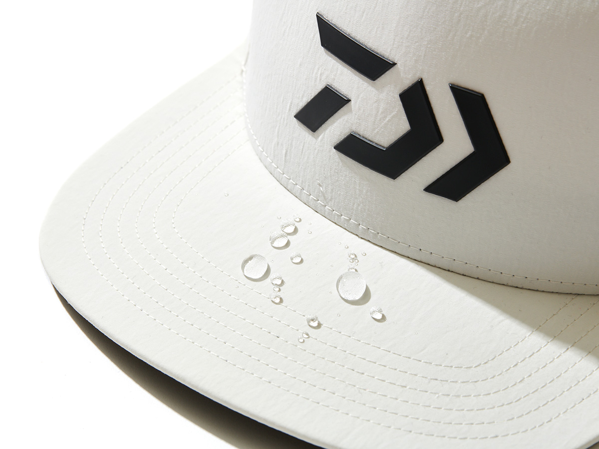 風の強いボートでの着用を想定し、取り外し可能なあご紐が付いたキャップ。撥水加工で、海水をかぶっても染み込みにくく実釣時に便利。つば裏はブラックで水面の照り返しを防ぎ、見やすくなっている。