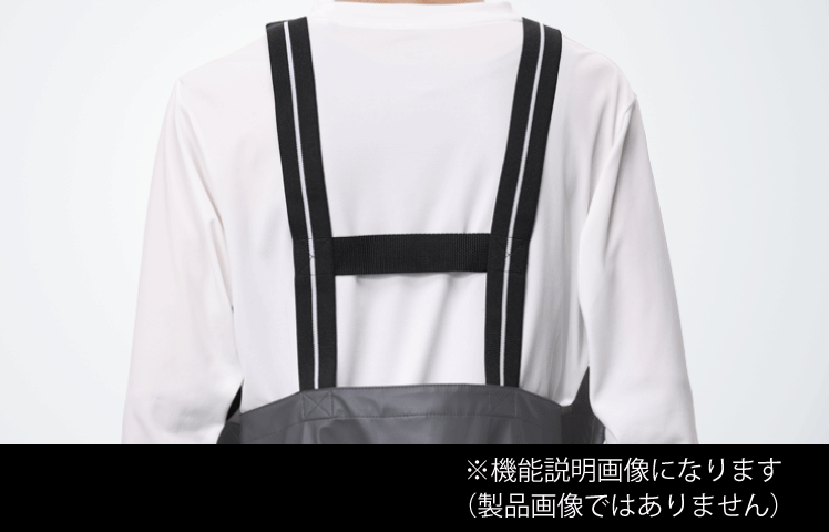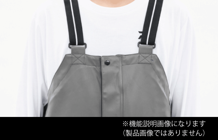 防水性の高いチェストハイサロペット仕様(サスペンダー付き)。
