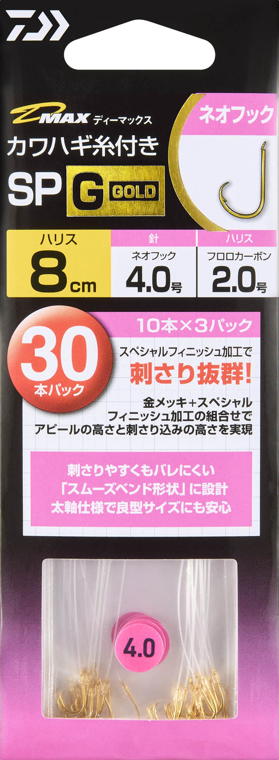 D-MAX カワハギ糸付 SP G ネオフック 4.0 | 4.0 | 2.0 | 8 | 4.0号 | 30 | 1,470 | 4550133601767 |