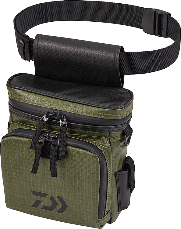 ライトゲームを楽しむためのコンパクトタイプのバッグ。防水生地に樹脂コーティングを施していますが、防水バッグではありません。よく使用するルアーを収納し取り出しがラクラクな「ルアーマット付きフロントポケット」を備え、ポケットの開閉を容易にするフラップ付き。ウエストベルトにはねじれにくい「ハードベルト」を採用し、バッグ本体部の移動がしやすく扱いやすい「低重心縦型形状」となっています。雨や水しぶきに強い止水ファスナーを使用し、メインルームには中型ボックス(約21x15cm)を1個収納可能。プライヤーホルダー、Dリング、ベルトループも付き。