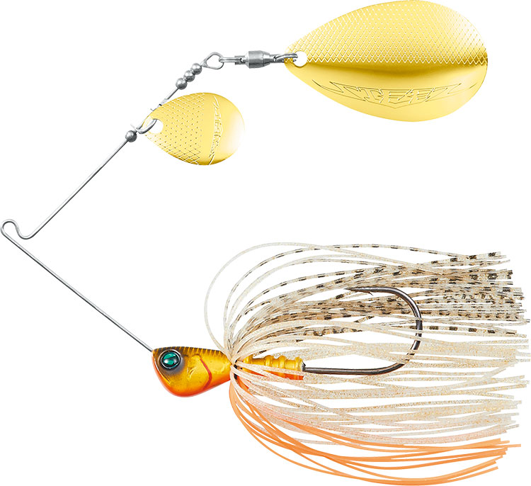 マッディウォーターに対応すべく開発された強波動スピナーベイト。通常のアプローチでは口を使わない厳しい状況でも威力を発揮する。ワイヤーはテーパードワイヤーを採用し、金属疲労の軽減と艶めかしいアクションを実現している。ヘッド形状はブレードのパワーに負けず、安定したスイミング姿勢を維持できる専用設計。フックは、トレーラーフック無しでもフッキングが決まるサイズ感で、サクサス加工を施してある。