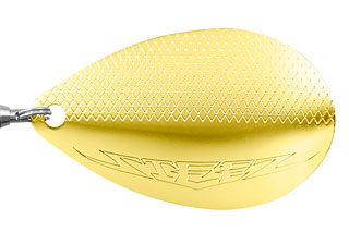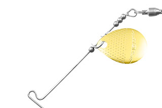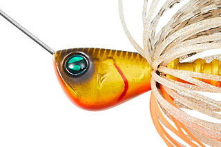 特注の極薄インディアナブレード。従来に無いほど大きく回転するブレードに設計。非常に大きく回ることで、水の攪拌能力も高く、スピナーベイト界最高レベルのアピール力を誇る。マッディな水色を得意とし、今まで口を使わなかったバスに対しても1stインパクトで口を使わせる。