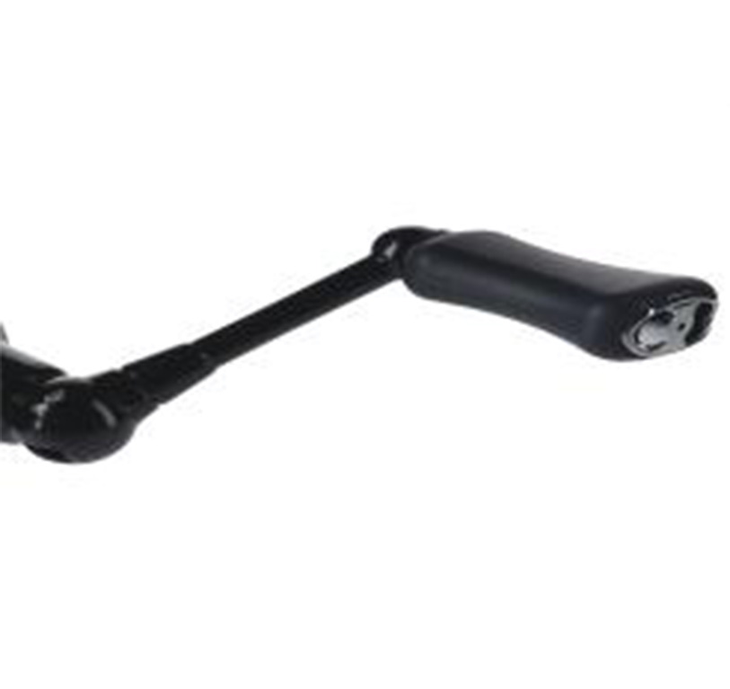 安定した巻上げ感をもたらす45mmマシンカットハンドル。折りたたみ式なので持ち運びにも便利。