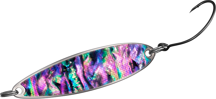 大物トラウトにも対応するシングルフック仕様(21g、25g除く)をラインナップ。