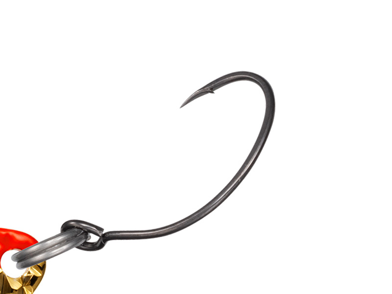 OWNER社製シングルフックを使用。ボトムトレースでも根掛かりしにくいフォルム。ホールド抜群のゲイプフォルム。アイ方向に向いたカッティングポイントがしっかりしたフッキングを約束。