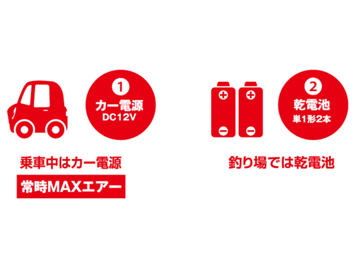 ジェットエアーアルファ Vレッド | 約15時間 | 約200 | 約82×144×43 | 単1形×2本 | 1.5L | 7,500 | 4960652227124 |