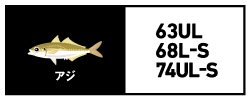 アジのサイズが15cmほどの場合は63ULがマッチ。遠投が必要なら74UL-Sがマッチ。