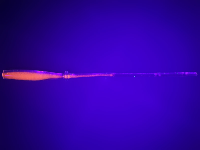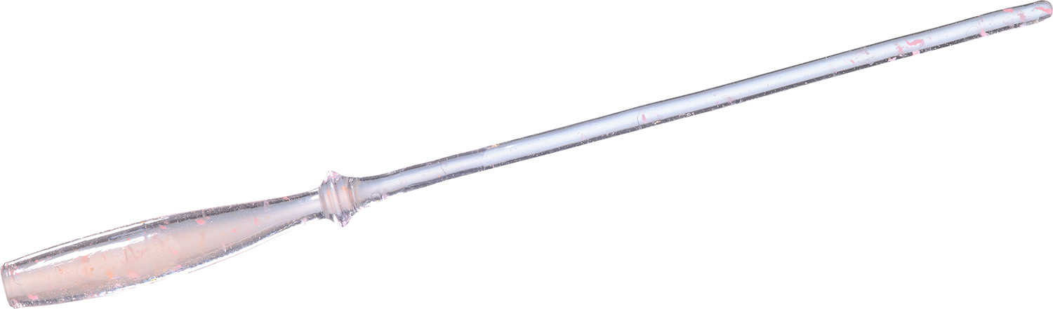 現在のアジングシーンにおいて高い実績を誇るのがスリム系のワーム。ピンビームは2.6インチの長さがありながらも体積は小さいため、活性の低いアジにもバイトさせやすく、細いボディーは容易に折れ曲がるため口内に入りやすくフッキング性能も高い。ボディーの半分以上を占めるロングテールは1.3mmという極細でありながらエラストマー素材のため耐久性が高く、適度な張りを持たせたことでラインやフックへの絡みつきも最小限に抑えている。ボディーとテールの間にある突起は適度な抵抗を生み、ノー感じになりやすいスリム系ワームのデメリットを小さくする。ロングテールはただ巻きやフォールでは小魚が静かに泳ぐときのような控えめな微振動アクションだが、シェイキングすると一転して艶めかしくテールが動き、シラウオやシラスウナギの様な生命感が一気に出る。このメリハリのあるアクションを生かし、リトリーブ中にシェイクをON、OFFすることでバイトのキッカケを生み出し、スレたアジにはボトム付近での1点シェイク、デイでは重めのジグヘッドと合わせてキレのあるアクションでリアクションバイトさせることも可能になっている。