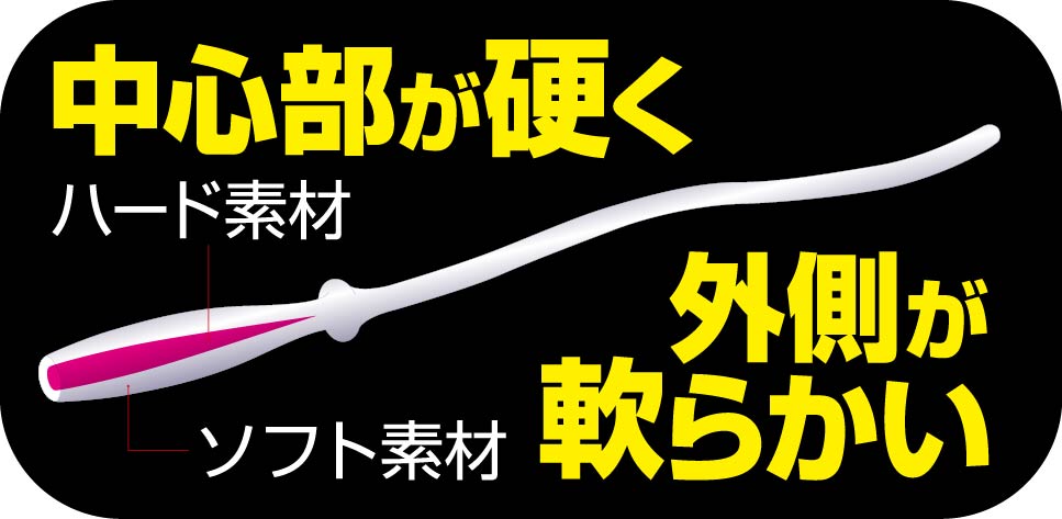 ボディコアにはハード素材、外側はソフト素材を成型したことにより、フックからズレにくい張りのあるボディと、わずかな水流にも艶めかしくアピールするソフトなロングテールを兼備。