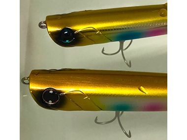 ノーマル仕様とのパッと見の違いは、目玉の色がブルーになったことで、ルアーケース内でも容易に識別可能。