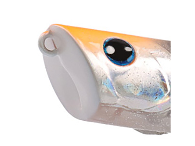 ばっさり切ったフラットな水受け部中央下部に浅いカップを備えたマウス部分が、スプラッシュと共に甘いサウンド、バブルを発生し、音、視覚で魚を寄せる。